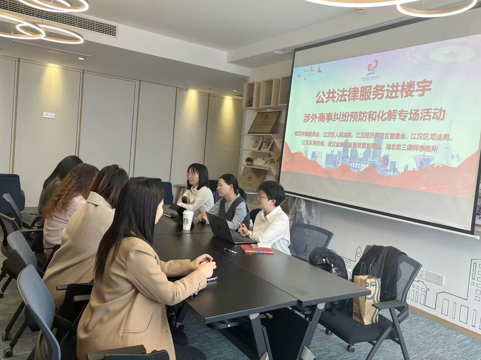 2024年10月29日上午,由武汉仲裁委员会、江汉区人民法院、江汉经济开发区管委会、江汉区司法局、江汉区商务局联合举办的公共法律服务进楼宇涉外商事纠纷的预防和化解专场活动,湖北忠三律师事务所严格律师、徐娅婷律师、孙艳君律师受邀参加广发银行大厦分会场企业法律咨询解答会。