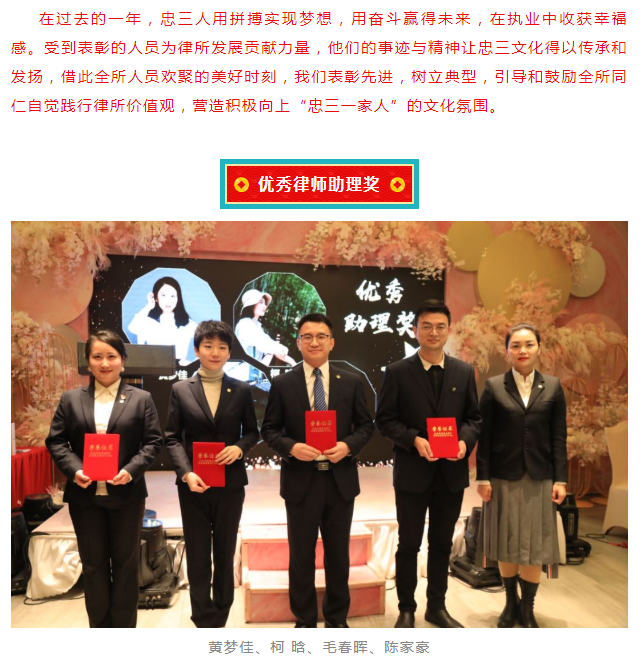 新年伊始,湖北忠三律师事务所(以下简称“忠三所”)于2020年1月11日-13日,举行了2019年全体合伙人大会暨总结表彰会。忠三一家人齐聚一堂,共同分享过去一年勠力同心、砥砺奋进的收获与喜悦,一起展望新一年携手并进、再创辉煌的美好愿景。