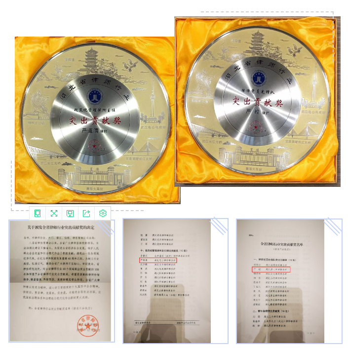 此次会议对为法治湖北建设不懈奋斗,为维护人民群众合法权益和社会稳定作出了积极贡献的律师授予行业突出贡献奖。忠三所主任严道清荣获“规范化管理律所主任突出贡献奖”,副主任严峻荣获“律师党员先锋队突出贡献奖”。