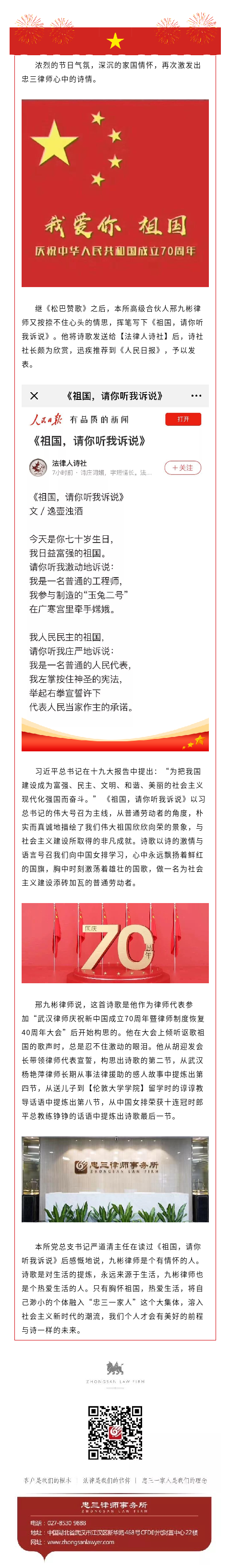 《祖国,请你听我诉说》:人民日报再次推送忠三律师诗作