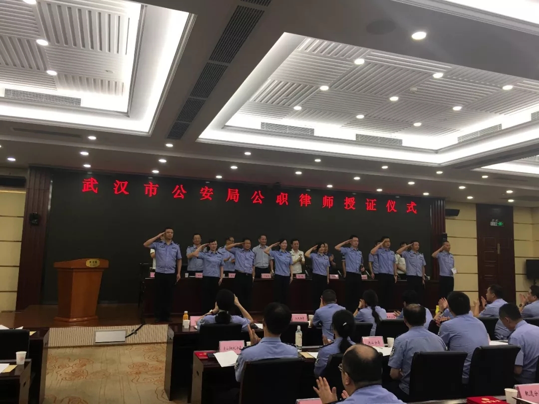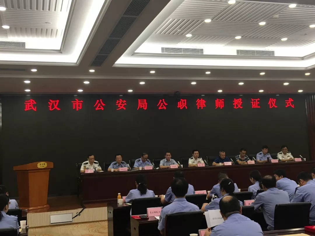 2019年9月11日,湖北省律师协会副会长、忠三所主任严道清律师,副主任李光胜律师应邀参加武汉市公安局公职律师授证仪式。市公安局党委委员、副局长夏俊,市司法局党委委员、副局长、武汉市律师行业党委书记聂德宗,市司法局律管处处长刘远雄,市公安局法制支队支队长王强,市公安局政治部、警务保障部等部门负责同志出席了授证仪式。