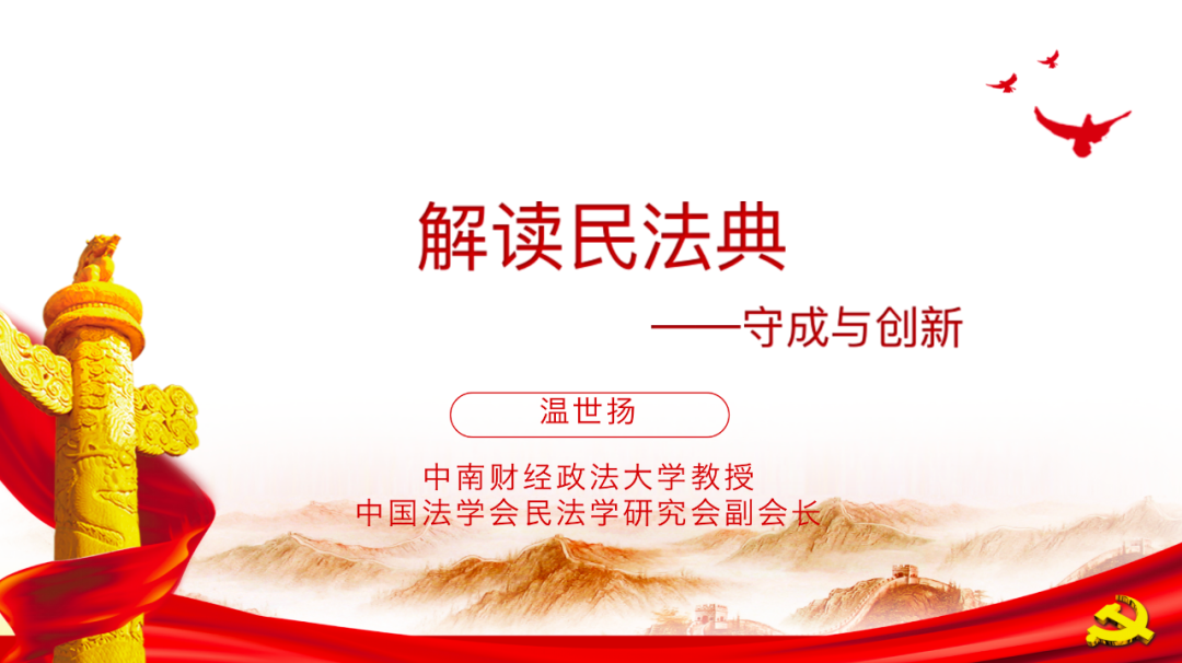 温世扬教授开场解读习近平总书记关于《民法典》讲话的精神,总结《民法典》的内容体现出“走中国之路、应实践之需、答时代之问”的立法宗旨。围绕“《民法典》守成与创新”的培训主题,温世扬教授指出,《民法典》总则编继受民商合一体例、延续权利-义务-责任的逻辑顺序,在补充民法渊源、重构主体类型、丰富权利体系、完善行为规则以及改进时效制度等方面有所创新。