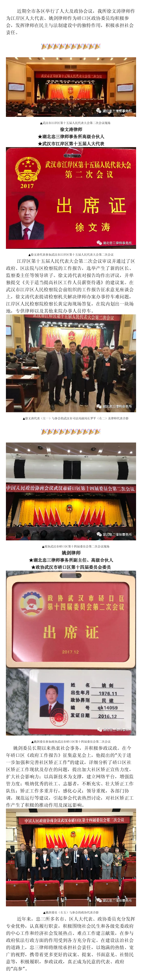我所徐文涛、姚剑律师参加区人大、政协会议