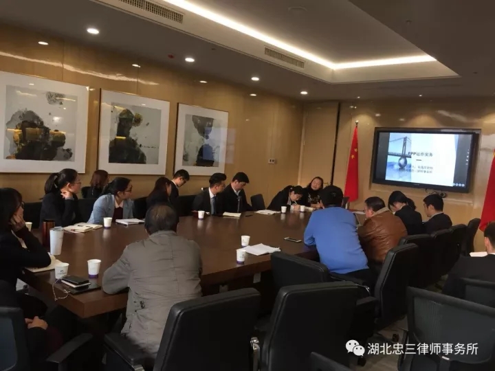 湖北忠三律师事务所作为武汉市最早参与PPP业务的律所之一,已经形成了专业功底扎实、实践经验丰富的PPP业务律师团队,并先后为江汉六桥岸接线、黄石新港物流工业园、光谷中心城的智慧工业园、江夏区中央大公园、G346、G240随州市区段改建工程及浪河至何店一级公路、京山县人民医院温泉新区医院等多个PPP项目提供法律服务。本次讲座的举行,加强了全所律师对该业务理论与实践的学习、认知水平,我所也将为更多的PPP项目提供优质、高效的法律服务!