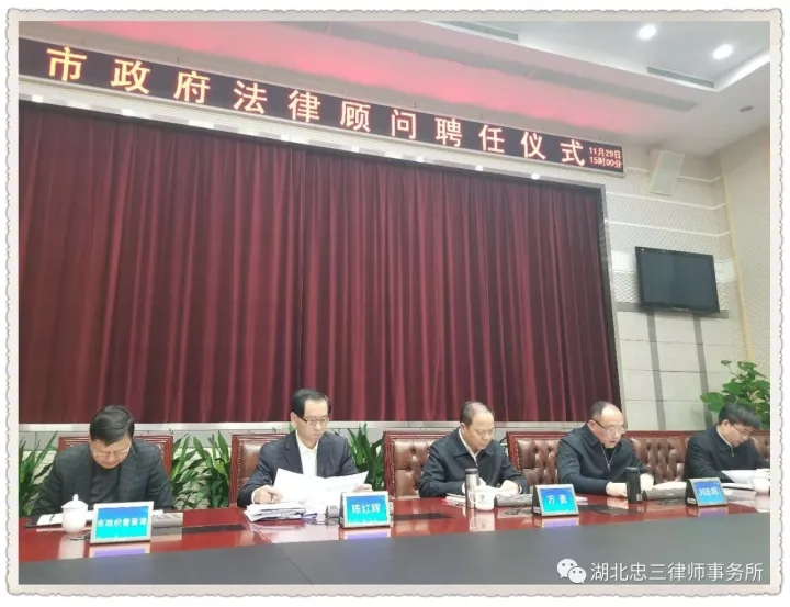 11月29日,第二届武汉市人民政府法律顾问聘任仪式在武汉市人民政府3号办公楼201会议室隆重举行,8名法学教授及9名律师受聘成为本届市人民政府法律顾问。