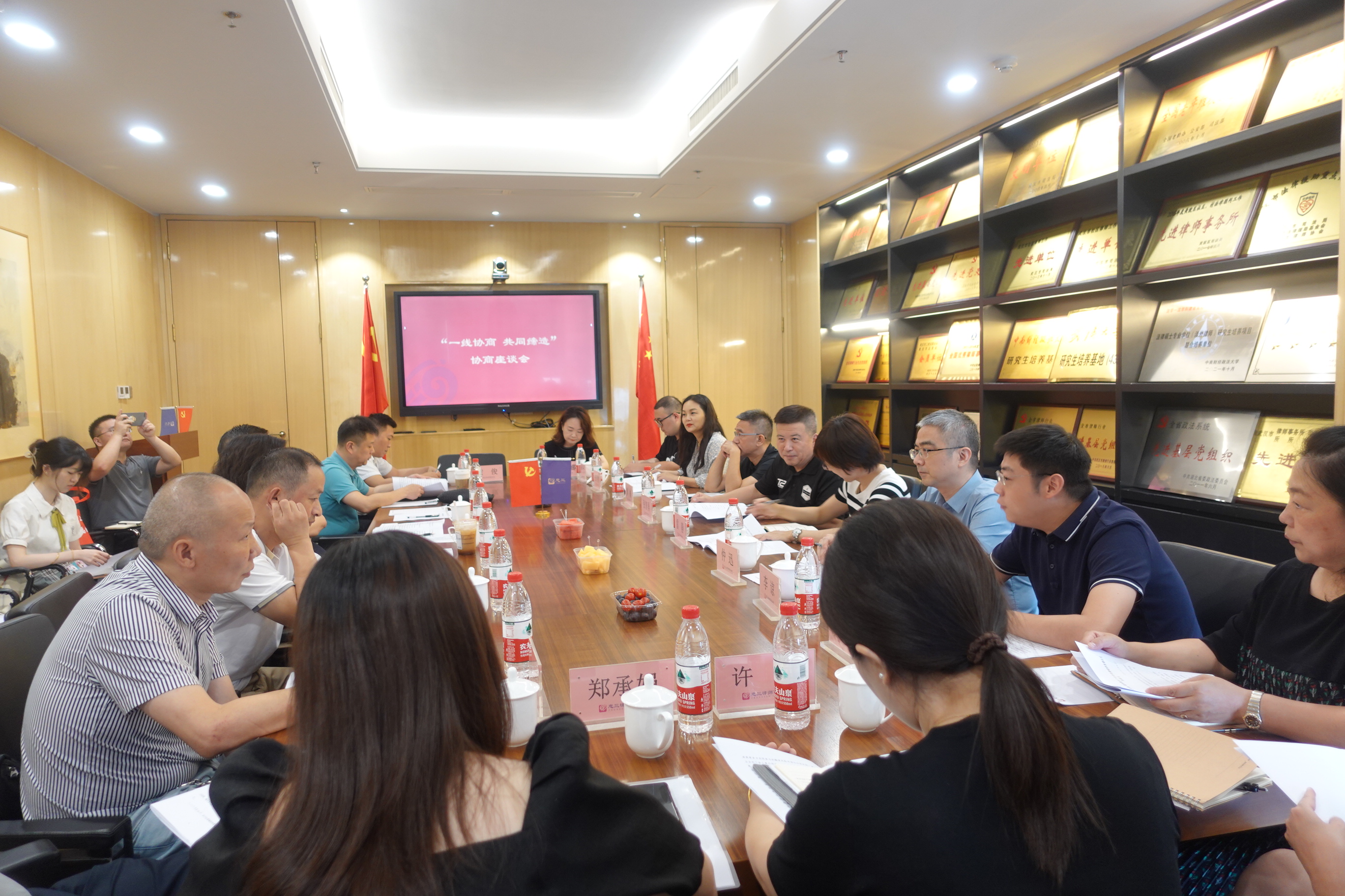 为贯彻落实中央和省市区促进民营经济发展壮大的有关要求,充分发挥法律服务行业政协委员专业优势,推动武汉市江汉区民营经济高质量发展,2023年8月7日下午,法律服务行业江汉区政协委员工作站“一线协商 共同缔造”协商座谈会在湖北忠三律师事务所(“忠三”)召开。