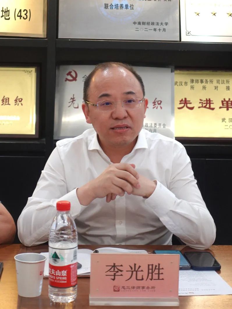 会议伊始,忠三管委会副主任李光胜律师对调研组的到来表示热烈欢迎。随后详细介绍了律所的发展历程、核心业务领域、律师队伍建设,并强调,忠三黄石分所的健康发展,离不开各位领导的指导与支持,非常感谢各位领导长期以来对忠三的关心和信任。