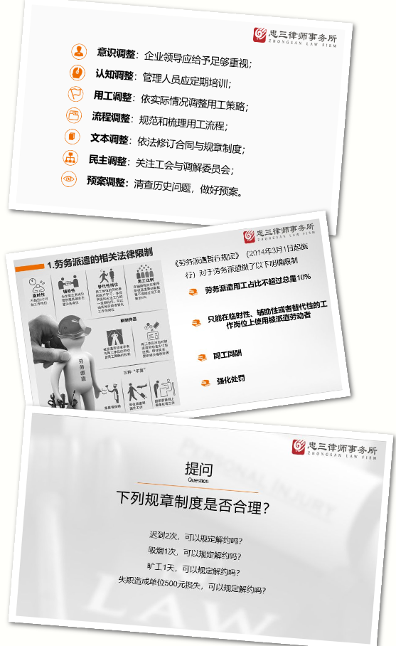 培训中,余佳奇律师结合中冶武勘院行业特点和实际用工情况,讲解了几种主要用工形式的优点和弊端以及不同用工形式的主要法律风险,特别是针对企业常用的劳动用工、劳务派遣、劳务外包三种用工形式进行了详细的讲解,并结合其执业11年以来遇到的劳动纠纷典型案例进行举例说明,提出其相对应的企业预防和解决方法。