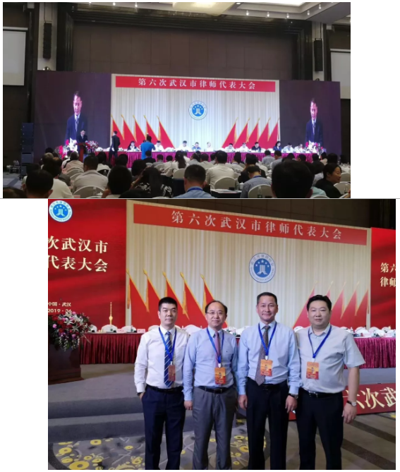 2019年6月26日至28日,第六次武汉市律师代表大会在联投半岛酒店会议中心隆重举行,市委常委、政法委书记、市委依法治市办主任曹裕江,省司法厅党委委员、副厅长、省律师行业党委书记张正军,中华全国律师协会副会长、湖北省律师协会会长岳琴舫出席会议并作重要讲话。武汉市司法局领导,第六次武汉市律师代表大会代表,各区司法局分管局长、律管科长,市纪委监委派驻市司法局纪检监察组,局机关有关处室负责人,第五届市律协会长、副会长、监事长及其他特邀代表共计300余人参加本次会议。大会开幕式由市司法局党委书记、局长关太兵主持。湖北忠三律师事务所(以下简称“忠三所”)主任严道清、副主任李光胜、姚剑、高级合伙人俞海作为代表参加了本次会议,行使代表权利,为协会发展建言献策。