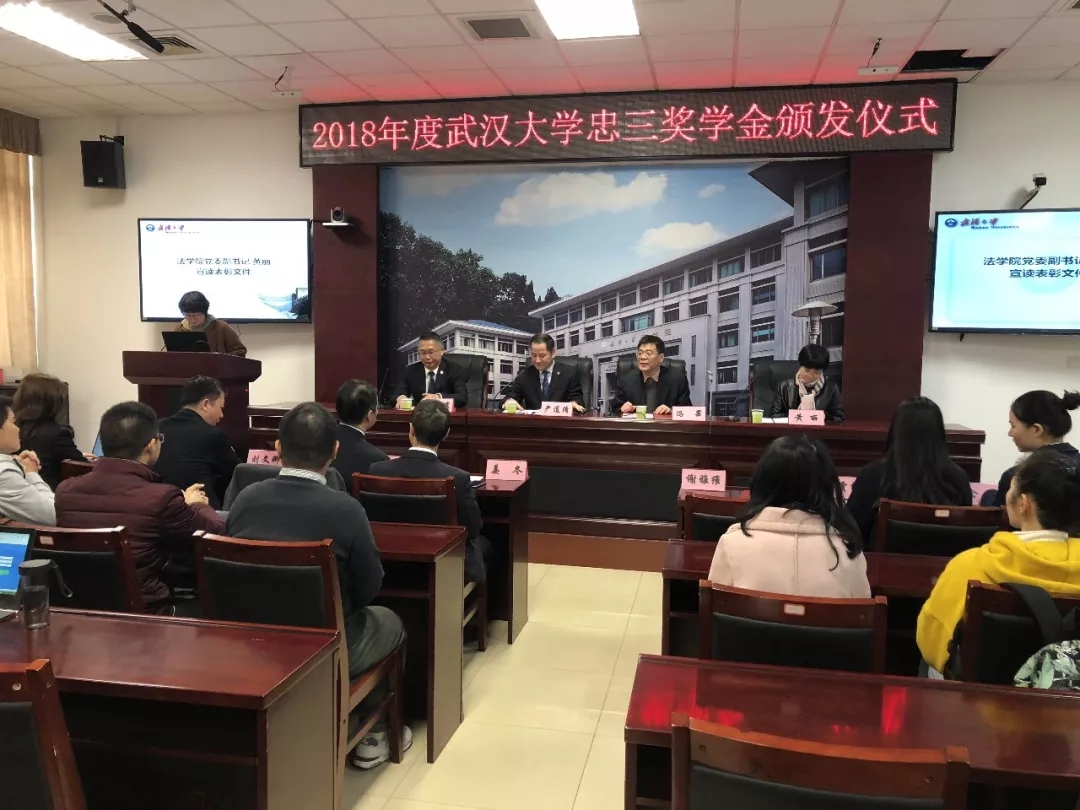 2019年3月12日上午,湖北忠三律师事务所为武汉大学设立的“忠三励志奖学金”颁奖仪式在美丽的珞珈山——武汉大学法学院隆重举行。