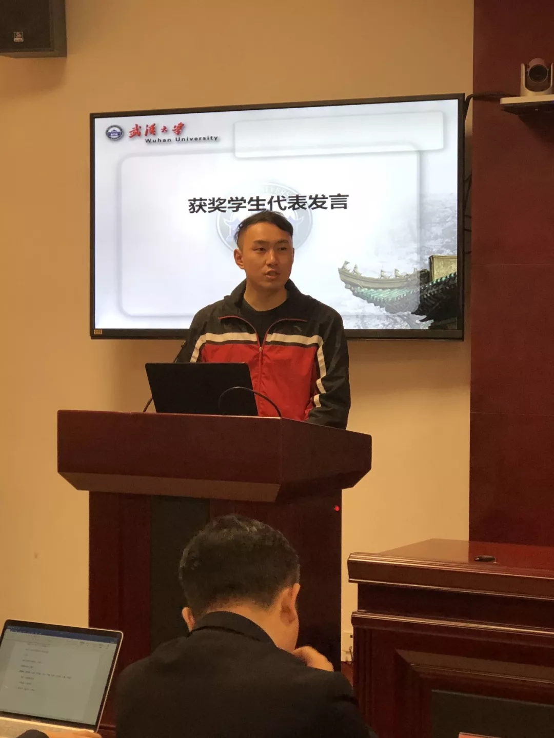 获奖学生代表发言,家境贫困的他表示,“忠三励志奖学金”,让梦想照进了现实,让他能够更好地完成学业,在今后的学习生活中,他会不辜负武汉大学法学院和忠三所师兄师姐们的期望,传递爱心,感恩奉献。