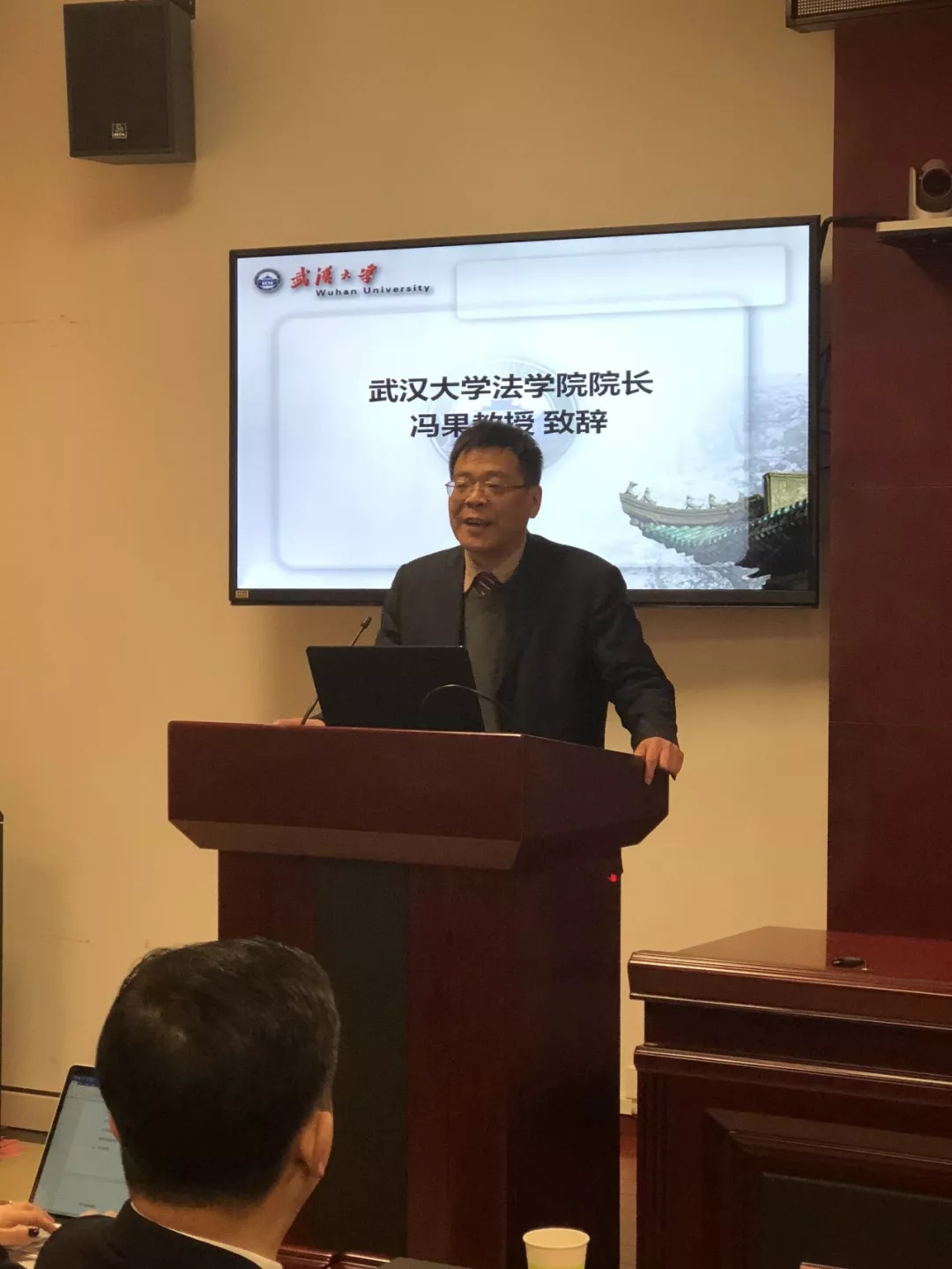 最后,武汉大学法学院冯果院长致辞。他首先对获奖同学表示诚挚的祝贺,对以严道清主任为代表的忠三所表示深深的感谢,并对同学们提出了殷切的期望: