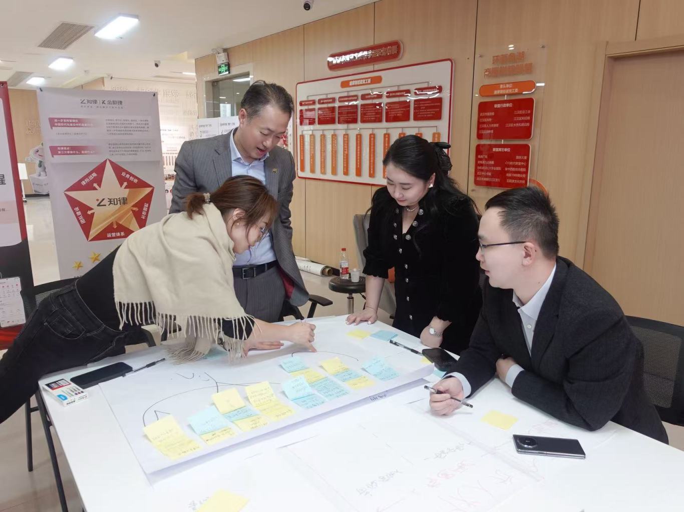 活动迅速进入高潮环节——分组共创。全体成员被划分为四个小组,每个小组均由管理团队合伙人与青年律师代表混合组成。各小组围绕“人所匹配、人岗匹配、人人匹配”三大核心原则,展开了热烈而聚焦的讨论。会场内思维激荡,观点交织,四张精心设计的“未来合伙人三大匹配分析画布”逐渐被填满,将抽象的人才标准转化为可见、可感的视觉成果,凝聚了各组的集体智慧。