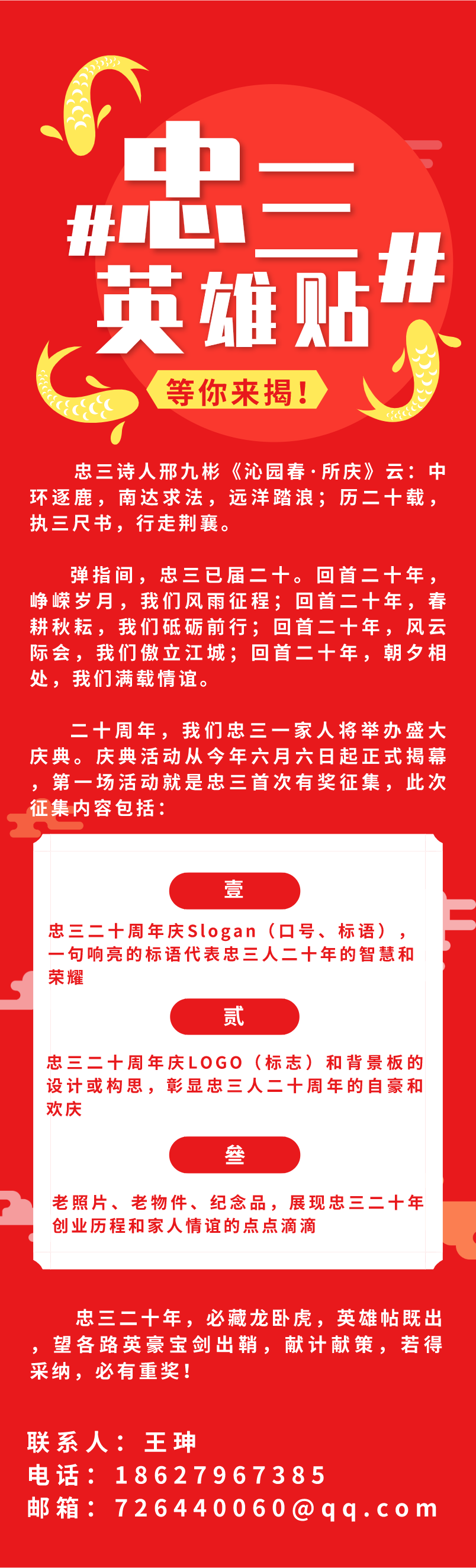 忠三二十周年庆典正式揭幕暨首期有奖征集火热开启!