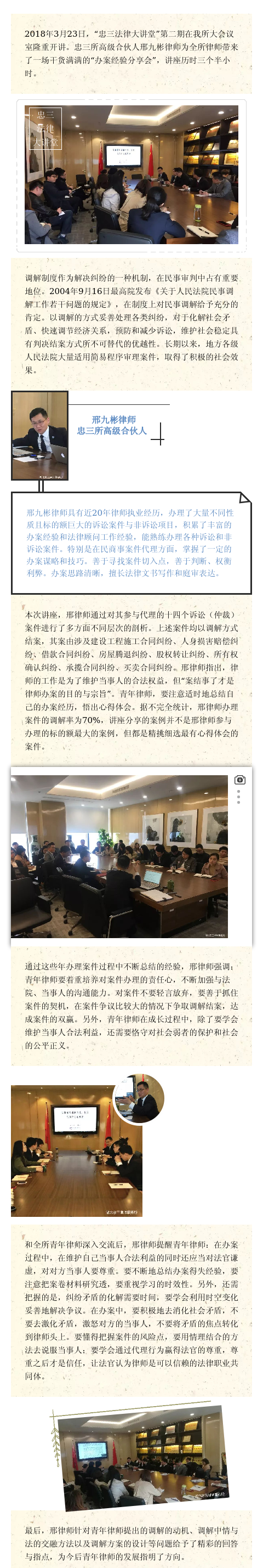 “忠三法律大讲堂”第二期开讲! ——《民事案件调解方法、技巧与客户关系维护》