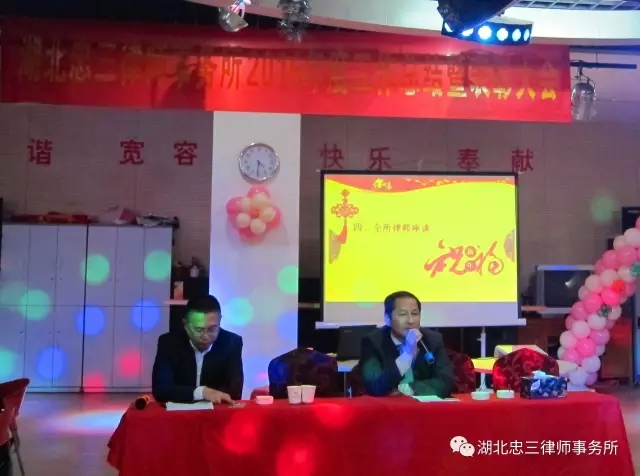 2017年1月17日,湖北忠三律师事务所2016年度工作总结暨表彰大会在新海景时尚酒店隆重召开。本次会议由忠三所严峻副主任主持。