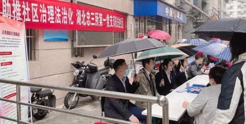 为宣传法律知识,弘扬法冶精神,提高社区居民知法、懂法、守法、用法的意识, 2021年10月14日上午,中共湖北忠三律师事务所党总支副书记王文武同志带领湖北忠三律师事务所第一党支部书记沈雾晴、组织委员汪晶(小)、支部党员律师王吉龙、马恒、汪晶(大)走进四唯街袁家社区,将法律服务送到了社区门口。