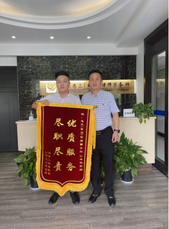 8月29日上午,王先生将印有“尽职尽责,优质服务”的锦旗送至湖北忠三(黄石)律师事务所,感谢忠三律所陈泽伟律师在为其亲属提供辩护的刑事案件中尽心竭力、尽职尽责,并对忠三律所的专业水平表示认可和赞扬。