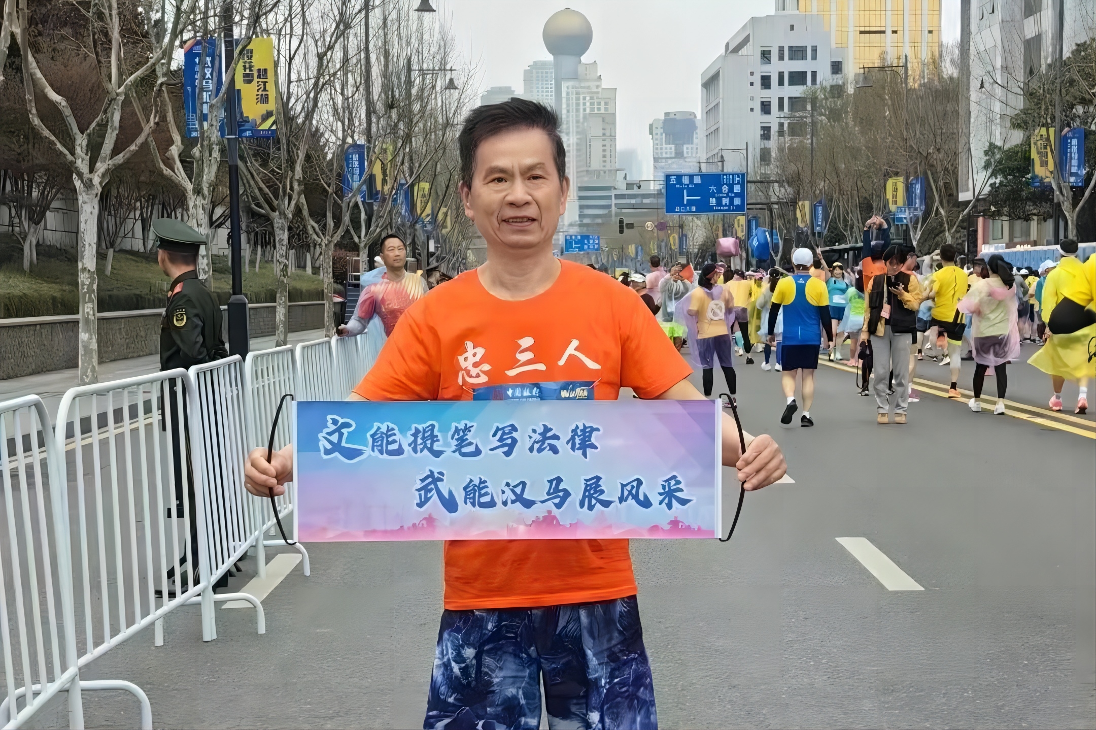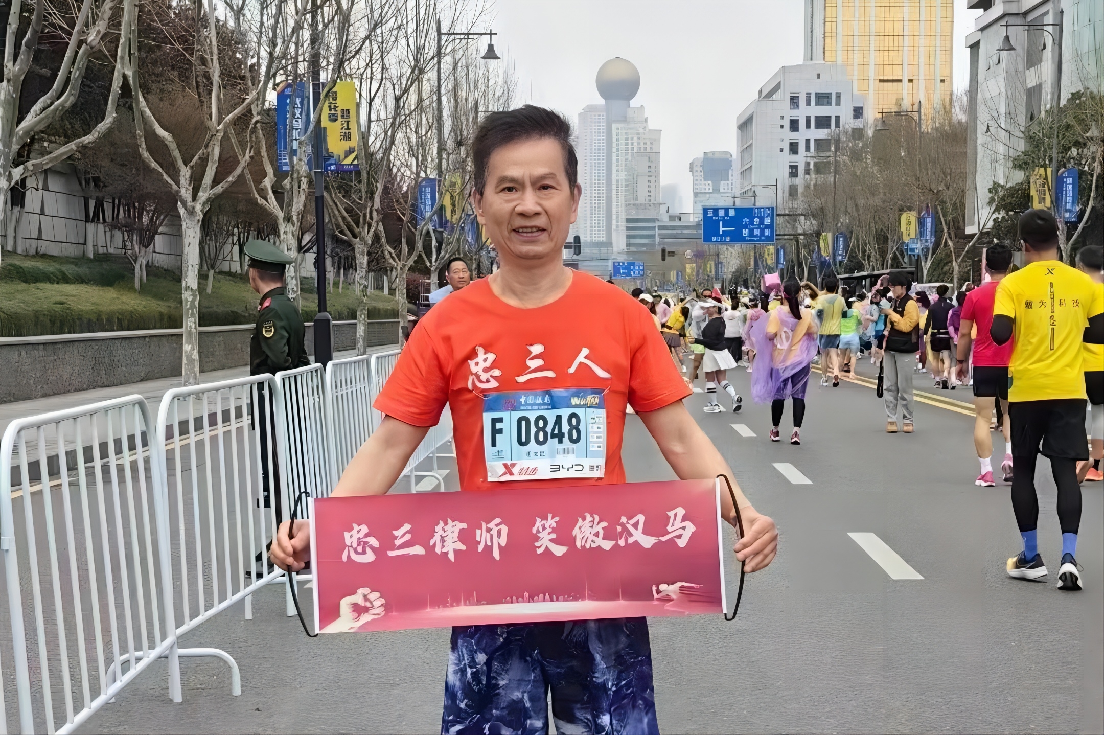 湖北忠三律师事务所(“忠三”)党总支副书记、监事会监事长、高级合伙人王文武律师,积极报名参加了本届武汉马拉松。自2016年参加武汉后官湖马拉松比赛后,王律师开启了一段非凡的跑步旅程。近十年,他参加了六届武汉马拉松比赛以及三届武汉后官湖马拉松比赛。他对生活充满了热情和活力,即使在极寒或炎热的天气里,也从不放弃自己的跑步计划,每周坚持长跑四五次,以此来保持良好的身体状态和积极心态。64岁的他用脚步诠释拼搏的精神,用实际行动告诉我们:年龄,从未是停下脚步的理由!