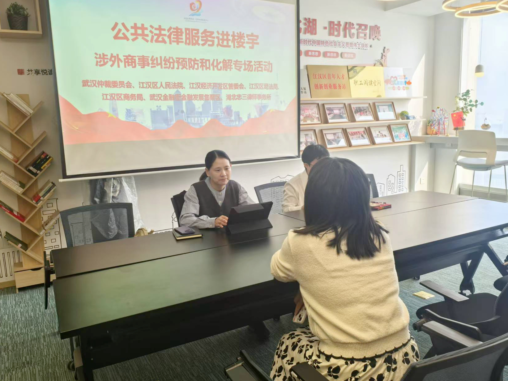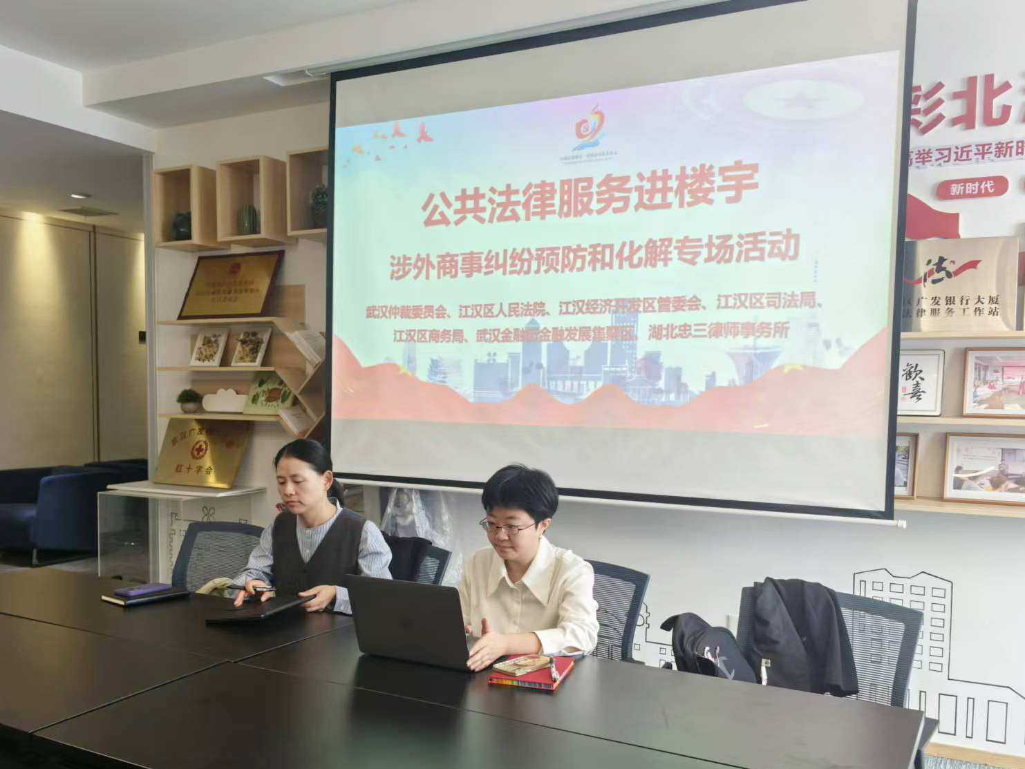 2024年10月29日上午,由武汉仲裁委员会、江汉区人民法院、江汉经济开发区管委会、江汉区司法局、江汉区商务局联合举办的公共法律服务进楼宇涉外商事纠纷的预防和化解专场活动,湖北忠三律师事务所严格律师、徐娅婷律师、孙艳君律师受邀参加广发银行大厦分会场企业法律咨询解答会。