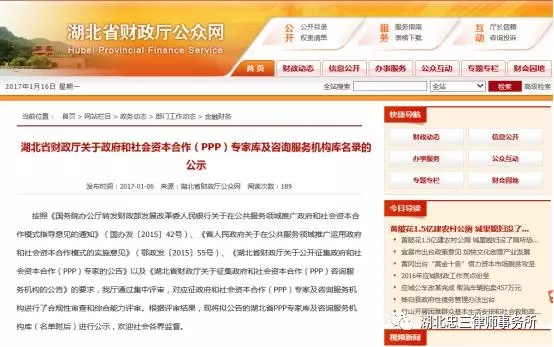 湖北省政府和社会资本合作(PPP)专家公示