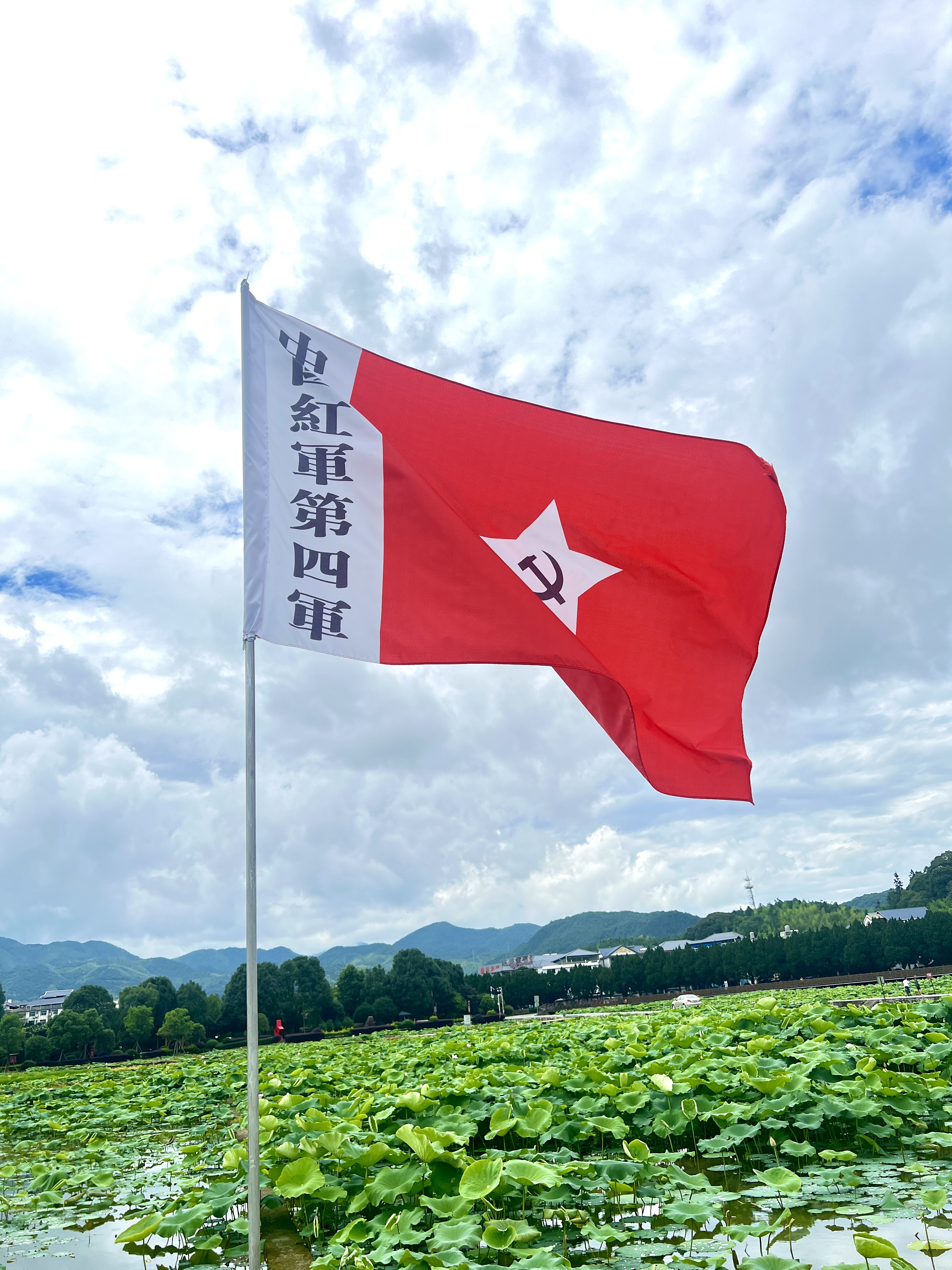 走进古田后,路上全都插满了印有“中国红军第四军”的旗帜,在这样有浓烈的红色印记的地方,革命之情、自豪之情、敬佩之情,油然而生!