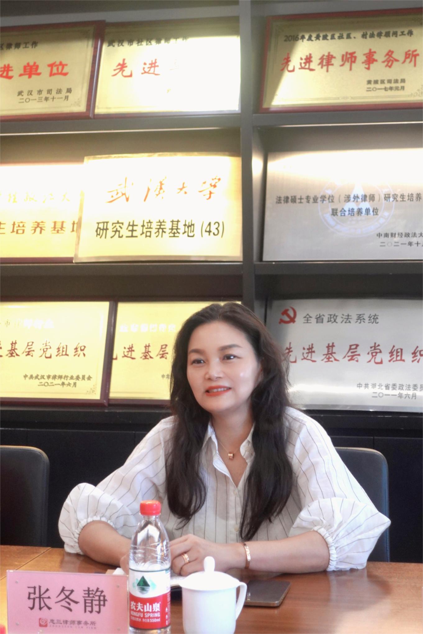忠三管委会主任张冬静对来访领导表示欢迎,对江汉区司法局及唐家墩街道办事处一直以来给予忠三的关心支持表达了由衷的感谢。随后,张冬静主任从文化党建、律所运营、人才培养、律所荣誉、社会责任等角度全面汇报了忠三取得的成绩以及未来方向的思考。她表示,忠三人有理想、有抱负、有追求,力求在助力区域经济高质量发展中不断增添法治新动能。