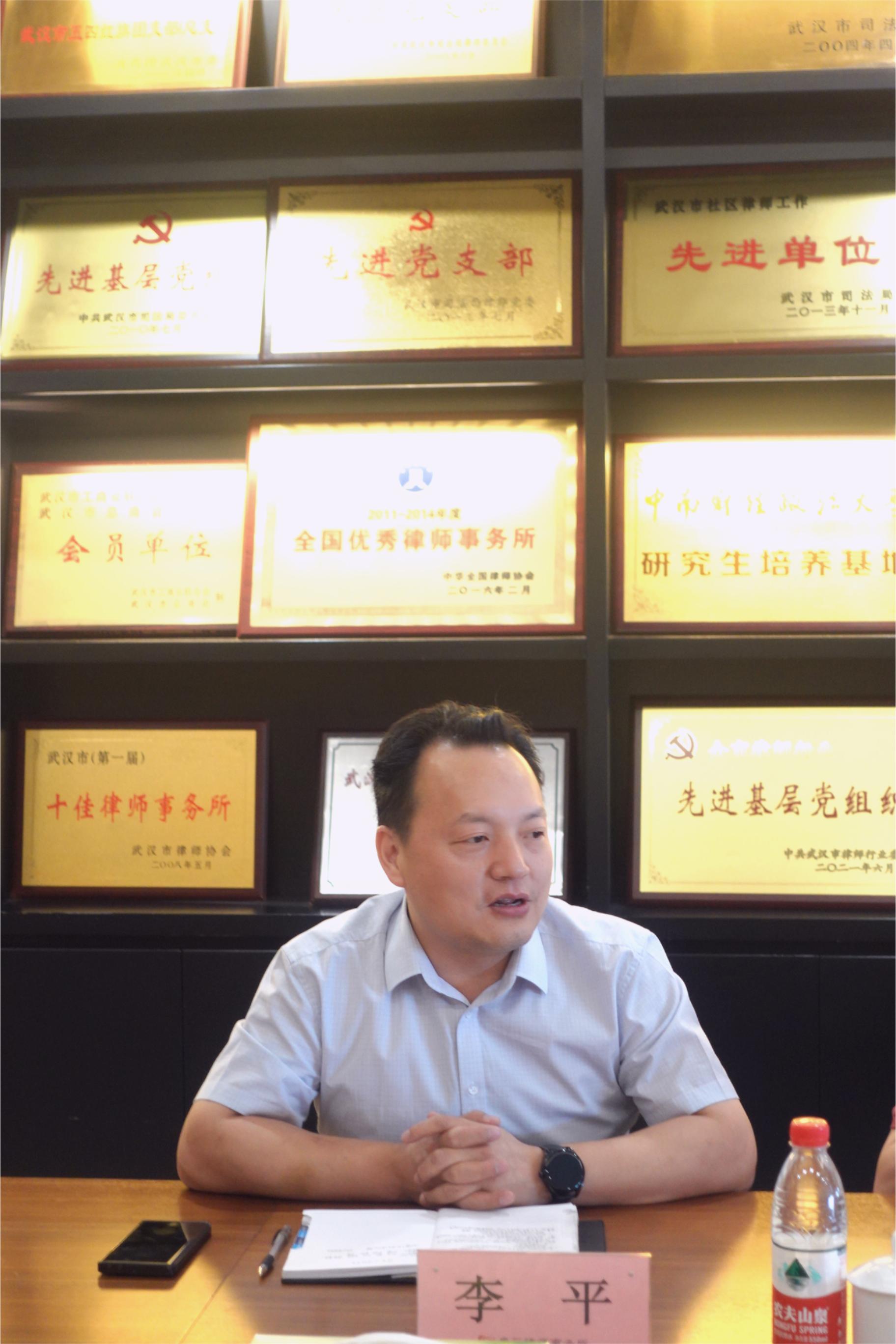 江汉区司法局党组书记、局长仲迅对忠三走高质量、高标准、高水平的律所发展道路予以充分肯定,就如何更好履行社会责任,投身区域协调发展大局,他提出了四点要求:一是贯彻落实司法部党组对广大律师提出的“五点希望”,坚持“以党建促所建”,坚定拥护“两个确立”,坚决做到“两个维护”;二是总结律所管理经验思路,建立长效机制,加大规范化管理、品牌化建设、人才队伍引进等工作力度;三是利用辖区工作站,发挥律师职业优势,以法律服务赋能助力产业发展,实现“一加一大于二”的协同效应;四是参与公益法律服务活动进企业进园区活动,了解企业法律服务需求,精准做好法治服务,积极投身于优化法治化营商环境进程。