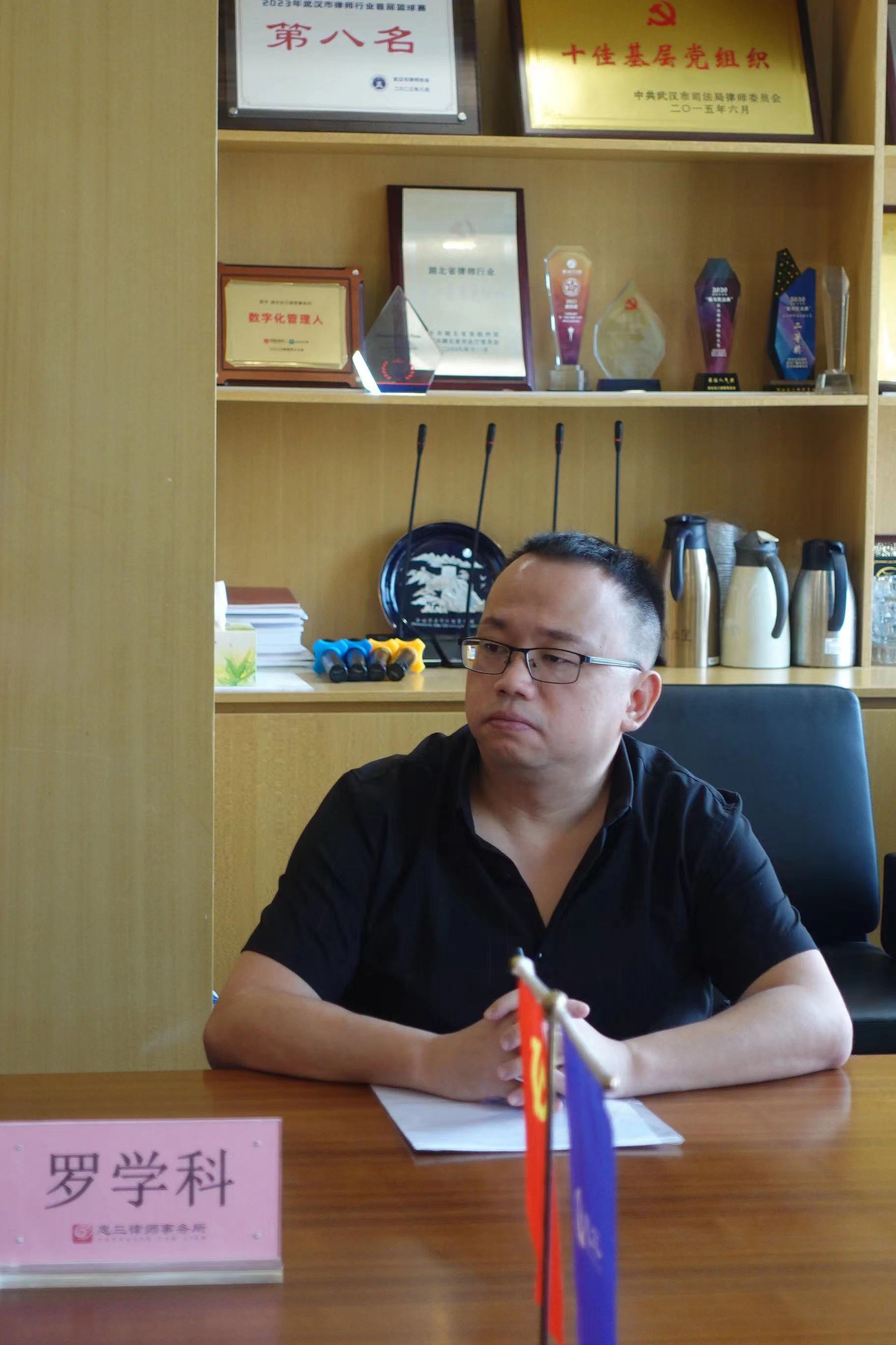 2023年9月4日上午,民革武汉市委会秘书长孙凯,社会服务部部长刘辉莅临湖北忠三律师事务所(“忠三”)走访调研。忠三党总支书记严峻,管委会副主任姚剑,高级合伙人李飞金,民革党员、高级合伙人秦筱,民革党员罗学科参加座谈。