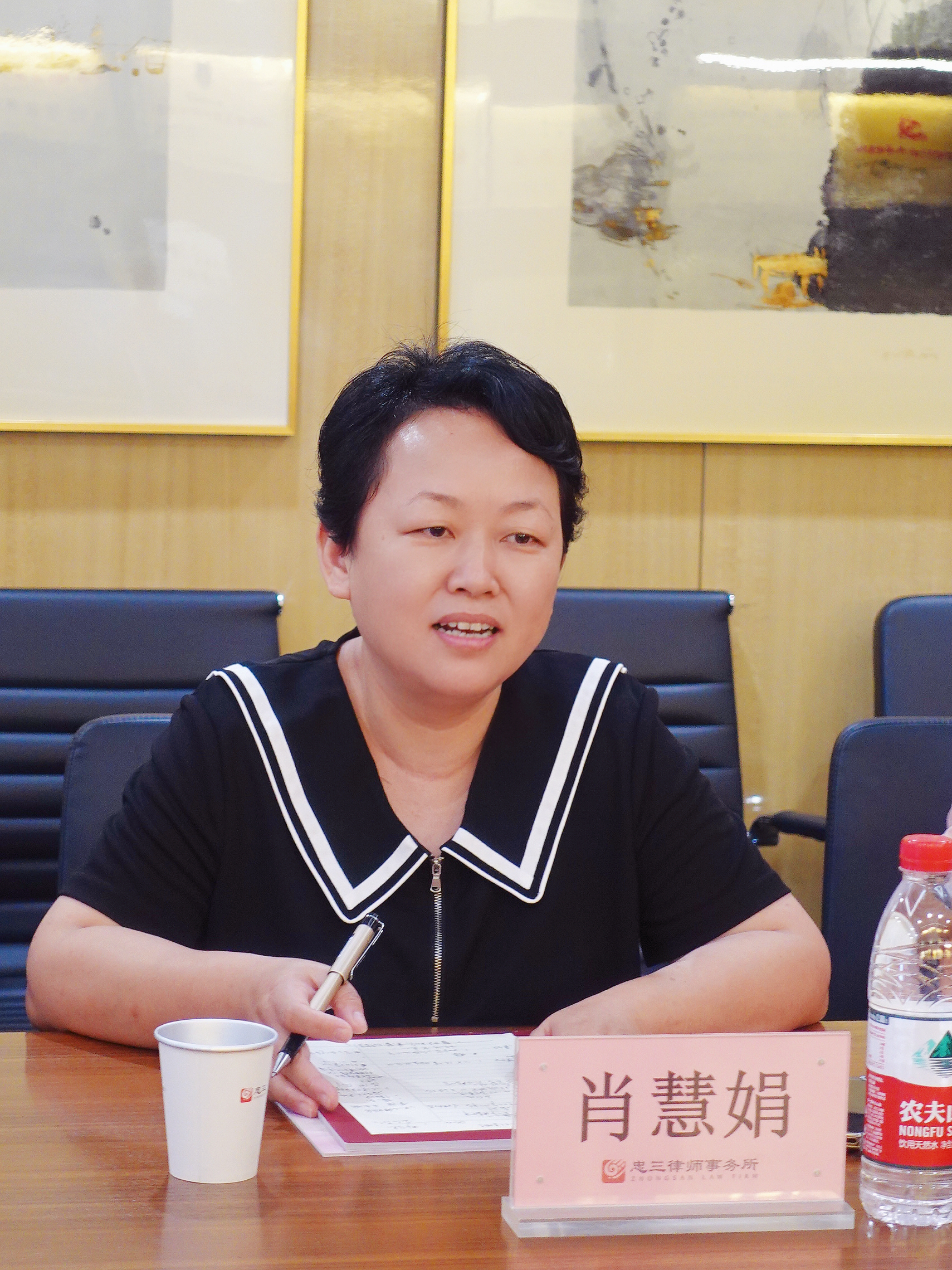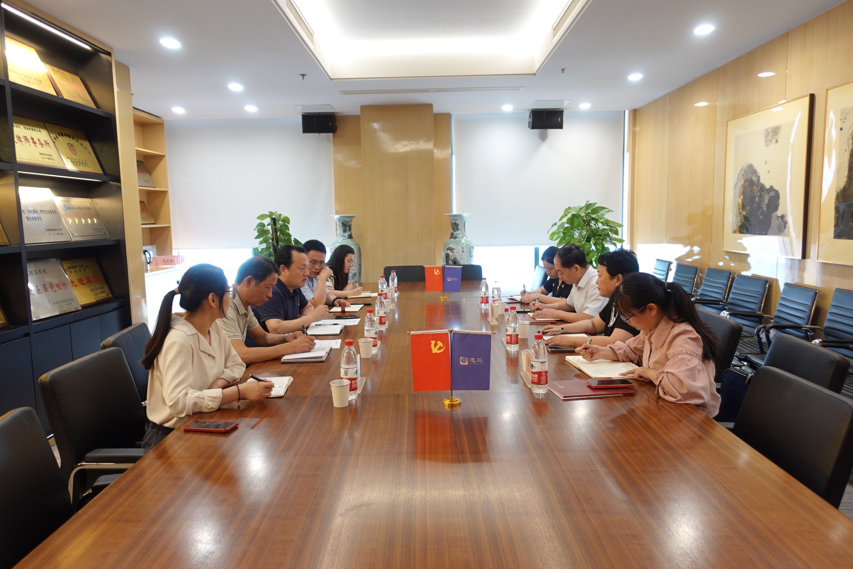 会前,肖慧娟局长一行参观了忠三接待大厅、办公区、照片墙、党建墙、荣誉墙等区域。在忠三管委会委员李平律师的陪同讲解下,领导们对忠三的党建工作、人才培养、专业发展、公益普法等方面有了一定了解,并予以高度评价。